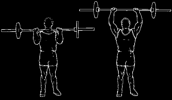 Человек всеми правдами и неправдами пытается выжать штангу вверху, используя читинг и помогая себе всем телом. Вся работа должна осуществляться за счет мышц плечевого пояса, но ни в коем случае не корпуса.