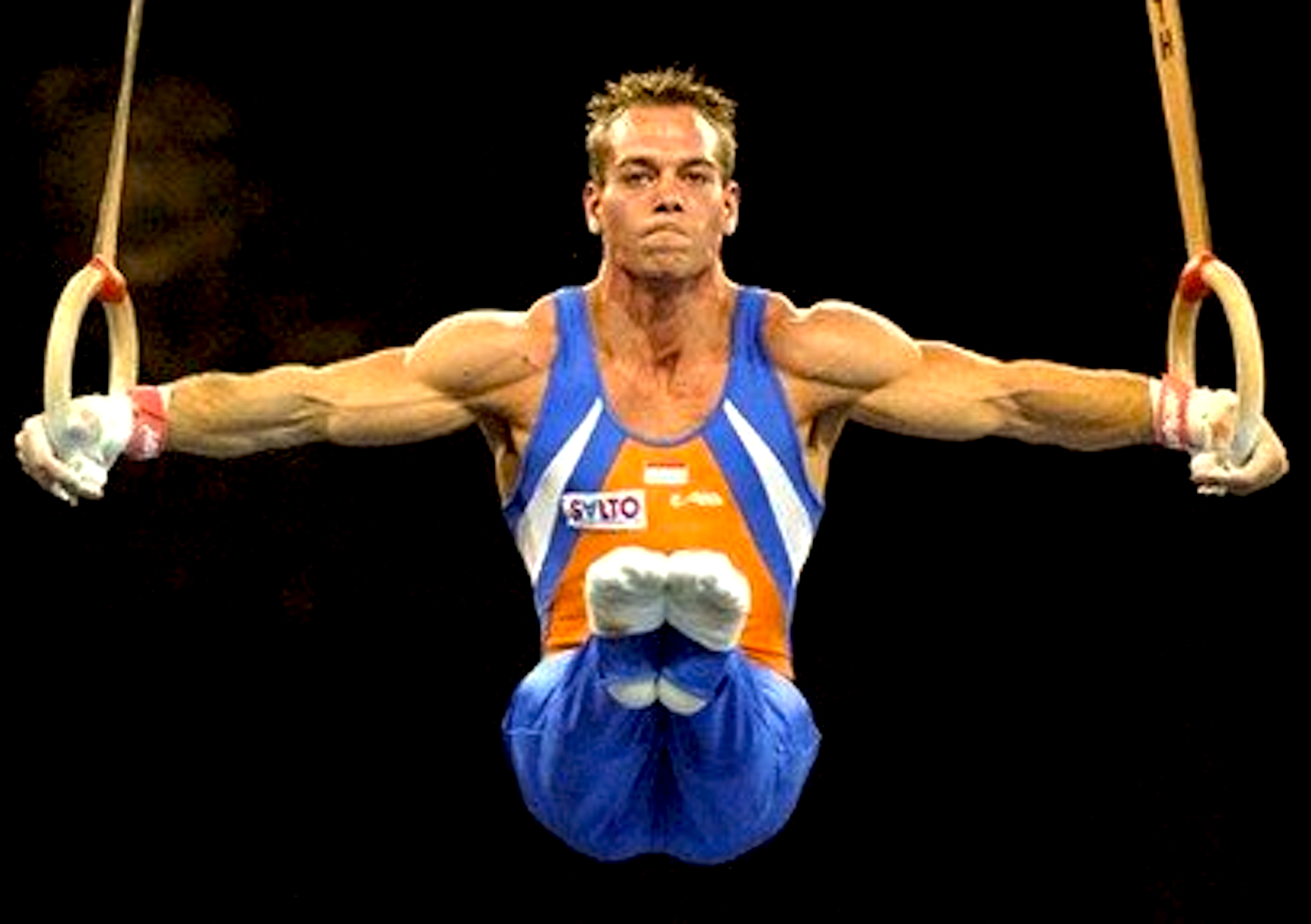 Бельгийский гимнаст Домиен Жабок выполняет железный крест, 19 лет20.
