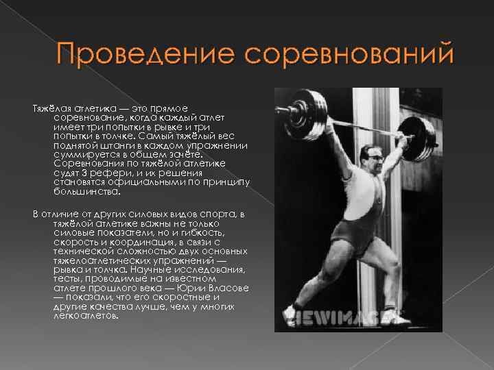 Тяжёлая атлетика – это вид спорта, в основе которого лежат выполнения упражнений с тяжёлой физической нагрузкой. Например, такое упражнение, как поднятие штанги над головой.