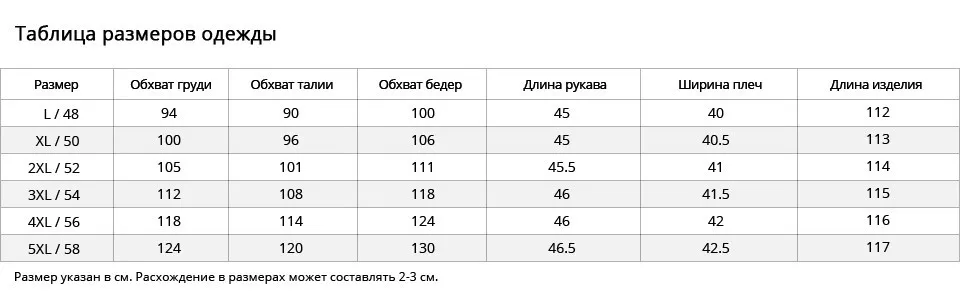 Мужская плечевая одежда | от 86 до 137 (см) | от 73 до 126 (см) | от 59 до 69 (см) |