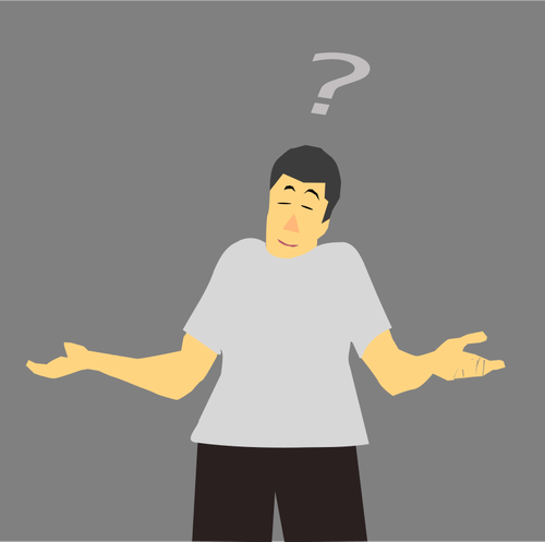 Умный случайный мужчина стоит и выглядит сбитым с толку, как будто он разговаривает с кем-то на белом фонеPREMIUM
